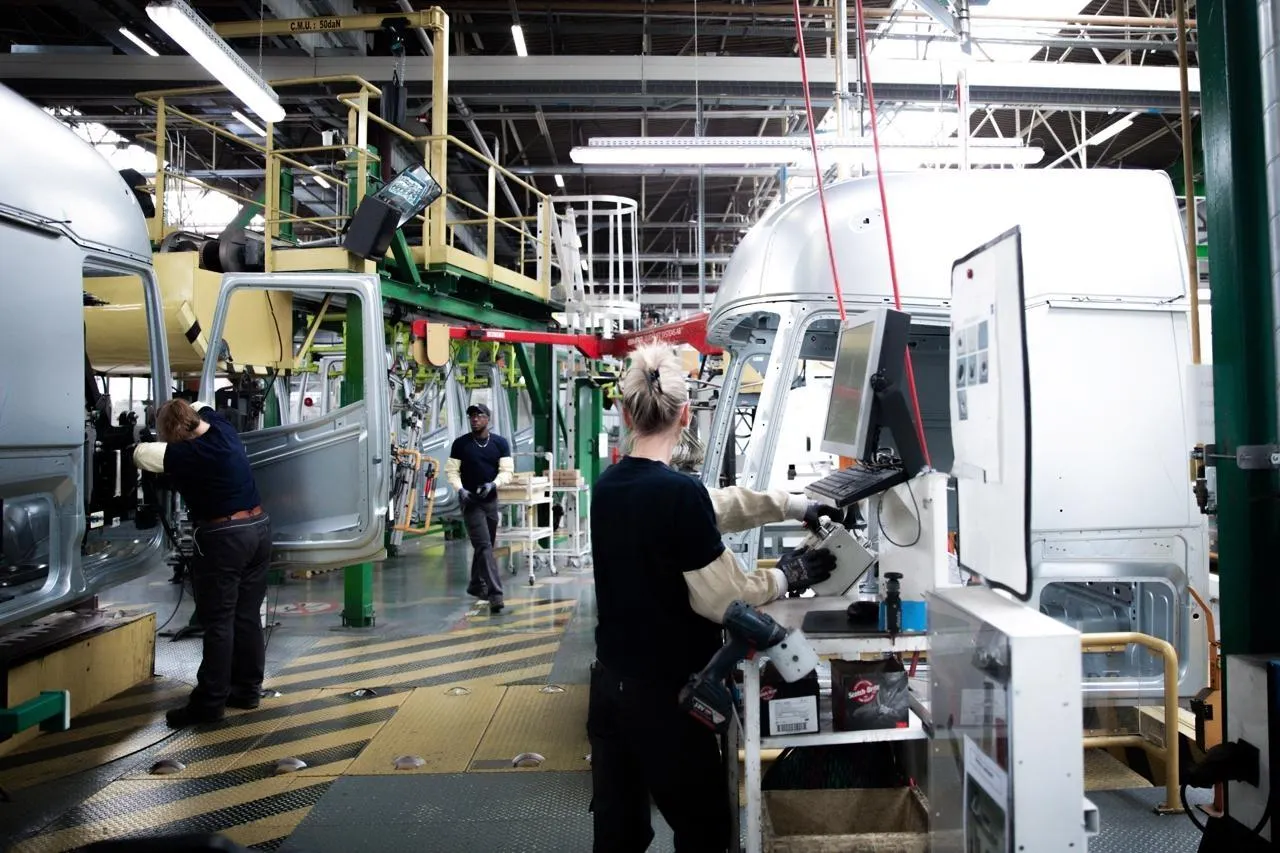 Les camions électriques, tels que ceux que produit Renault Trucks, à Blainville-sur-Orne, près de Caen, doivent permettre de réduire le bilan carbone toujours très élevé du transport routier. © LOU BENOIST / AFP
