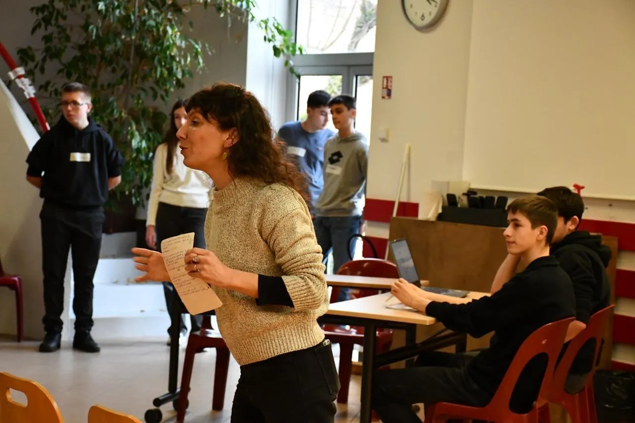 La comédienne Pauline Blais a aidé les lycéens à mettre en place un théâtre forum. Cet outil permet de sensibiliser à la question du genre dans le milieu agricole. © CO – Justine Brichard