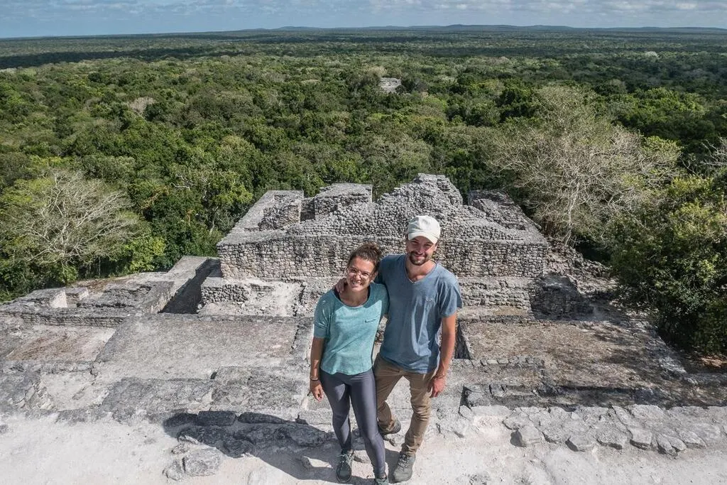 Adelin Puaud et Coralie Géhra sur le site archéologique Maya Calakmul, au Mexique. © Adelin Puaud et Coralie Géhra