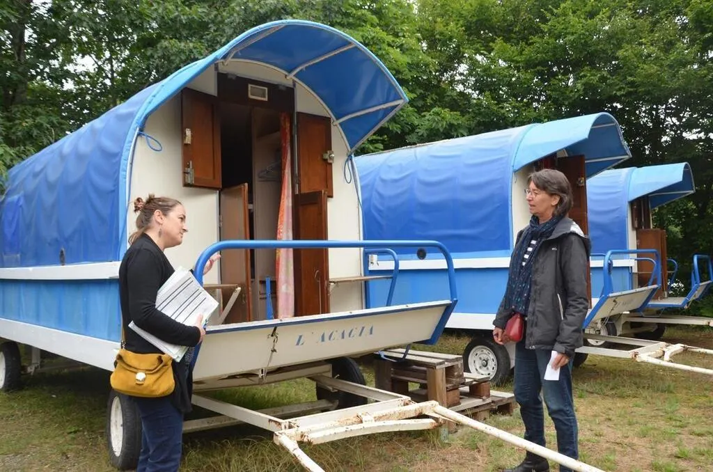 Quarante visiteurs lundi, autant en une heure ce mercredi : les roulottes de la Chevalerie du Thouet, à Aubigny, suscitent des convoitises. © CO - Fabien GOUAULT
