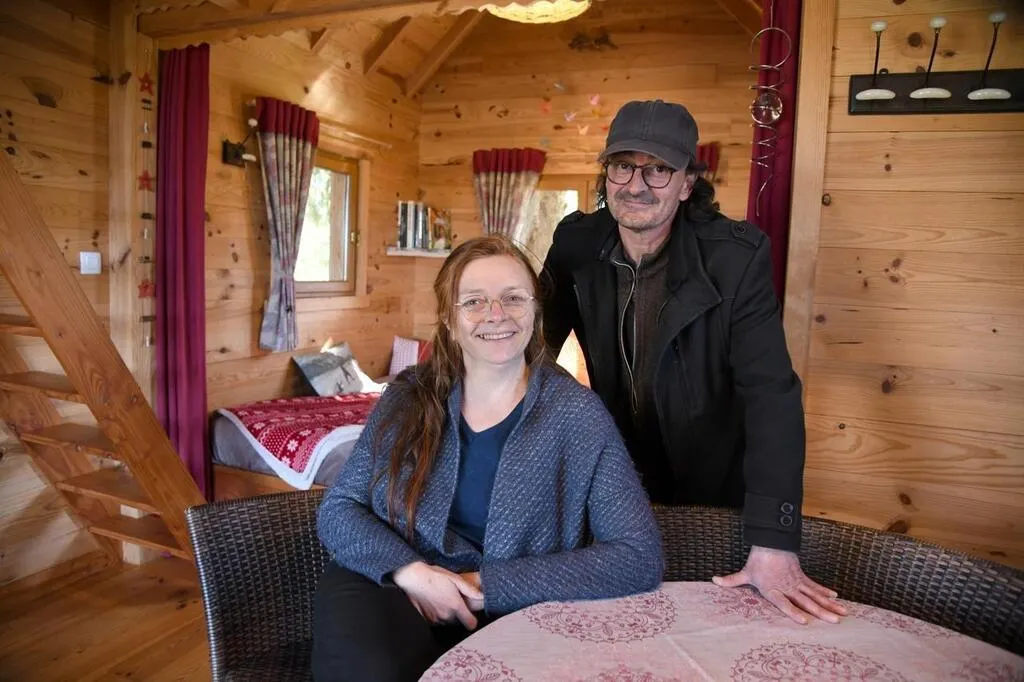Cathy et Laurent Mothet ont créé une cabane qui permet de « vivre en autonomie », à l’abri des regards. © CO-MARIE DELAGE
