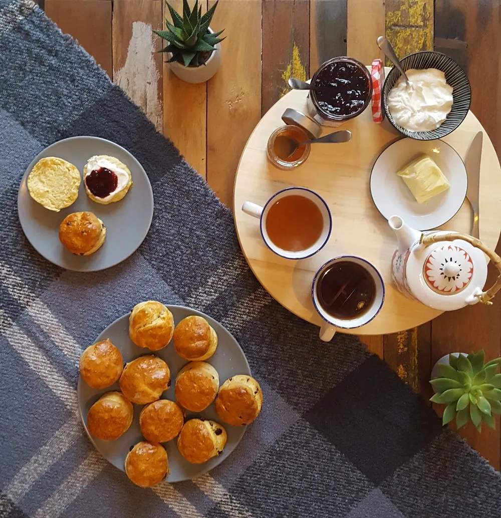 Traditionnellement, les Britanniques dégustent ces scones, tièdes ou froids, accompagnés de clotted cream (sorte de crème fraîche épaisse) et de la confiture, mais c’est aussi délicieux avec du beurre demi-sel ! Pour varier les plaisirs, vous pouvez ajouter des pépites de chocolat, des raisins secs ou des myrtilles à la pâte avant cuisson.