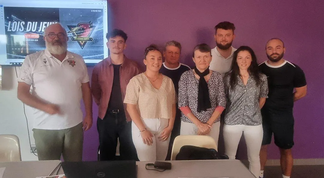 Les membres du bureau du club de football Bessines ASPTT.À gauche, le président Thierry Grellier. © CO