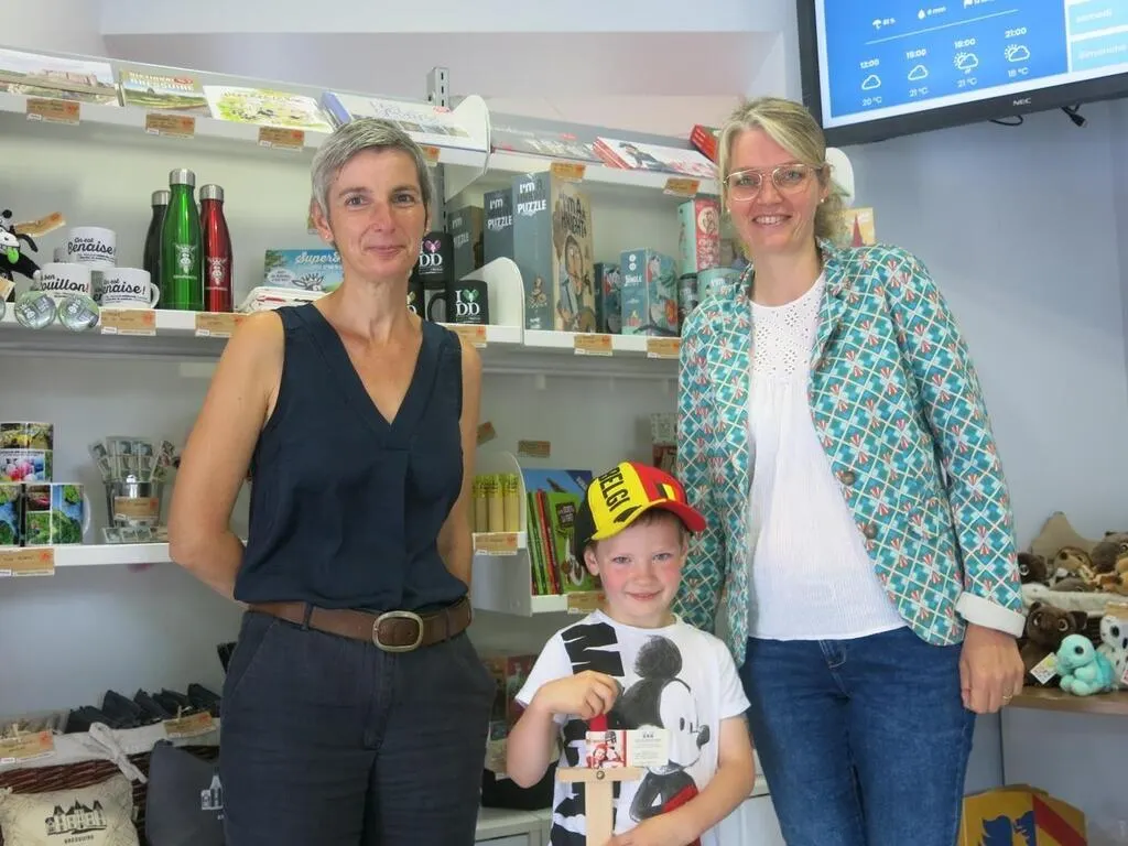Emmanuel est un jeune Belge, âgé de 4 ans, en vacances dans le Bocage bressuirais avec sa famille. En ce mercredi 28 juillet, il est avec ses parents à l’Office de tourisme du Bocage bressuirais. L’enfant repart tout heureux avec un achat : une épée en bois.