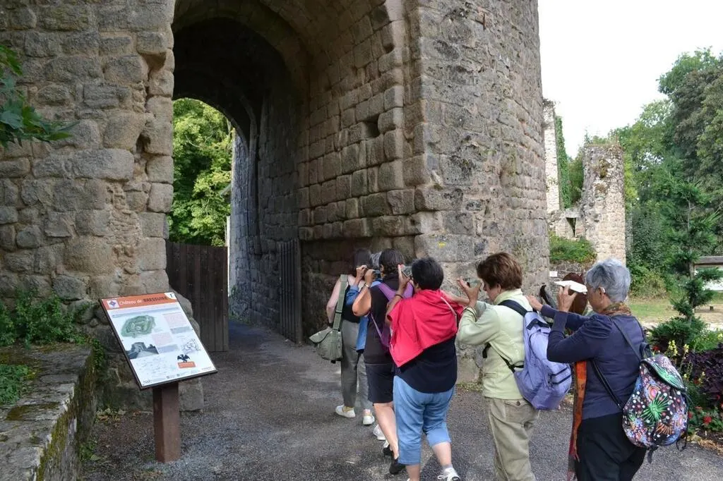 Entrée du château de Bressuire, mercredi 20 juillet. Les cinq amies ont pu toucher différents objets faisant lien avec le lieu. © CO – Valentin Baudin