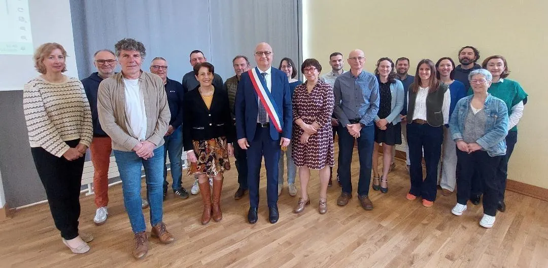 Marc Richet, le nouveau maire élu, entouré de ses quatre adjoints et des conseillers municipaux. © CO
