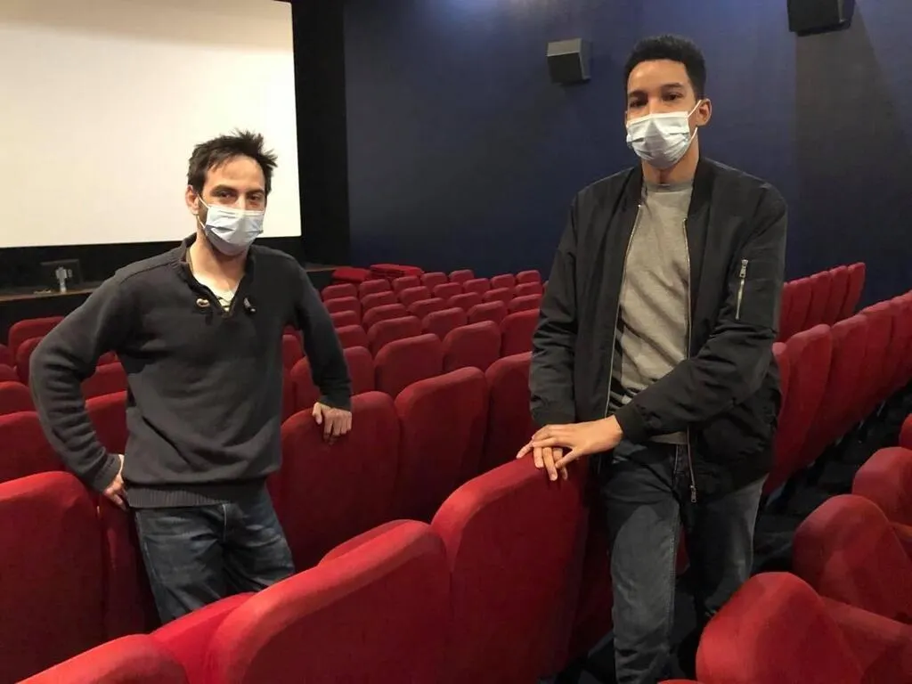 Joris Barbeau (à droite) et son collègue Julien Deseuvre préparent la réouverture du cinéma le Foyer de Parthenay, ce mercredi 19 mai. © CO
