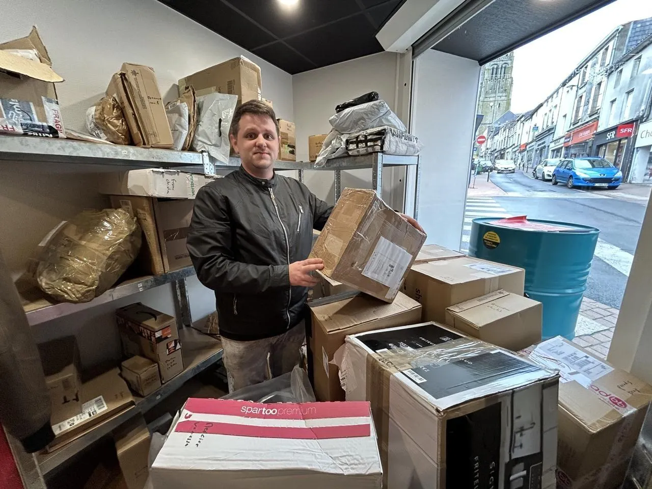 Jordan Giroire voit transiter près de 1500 colis par mois dans sa boutique de 20 m² du centre-ville de Bressuire (Deux-Sèvres). La gestion de l’espace, au quotidien, vire au casse-tête.