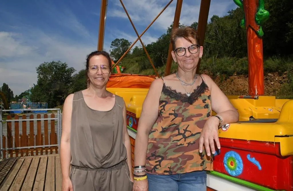 Massais, jeudi 10 juin. Karine Montalétang, co-gérante du parc et Stéphanie Roussière, nouvelle responsable commerciale, dans la nouvelle attraction, les Chaudrons. © CO – Marie DELAGE