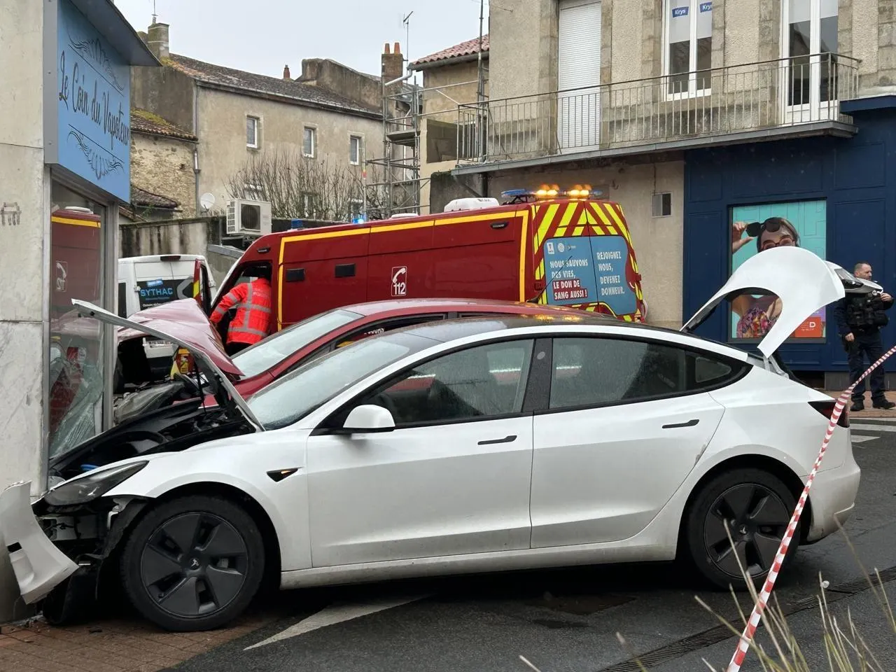 EN IMAGE. Une Tesla et une Citroën s’encastrent dans la vitrine d’une rue commerçante en Deux-Sèvres... |