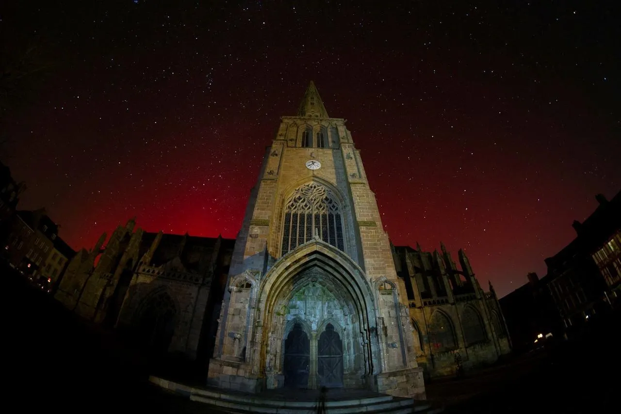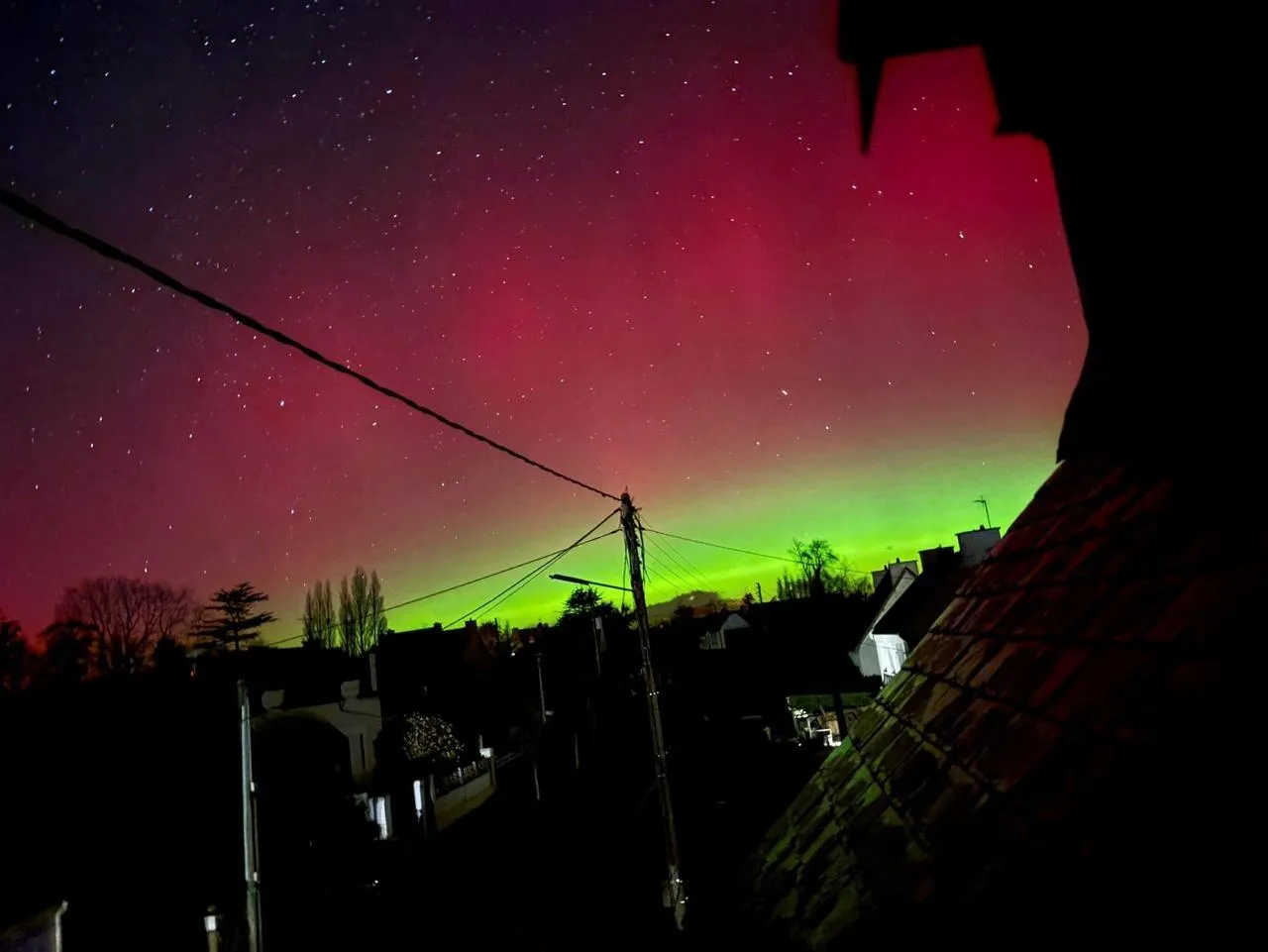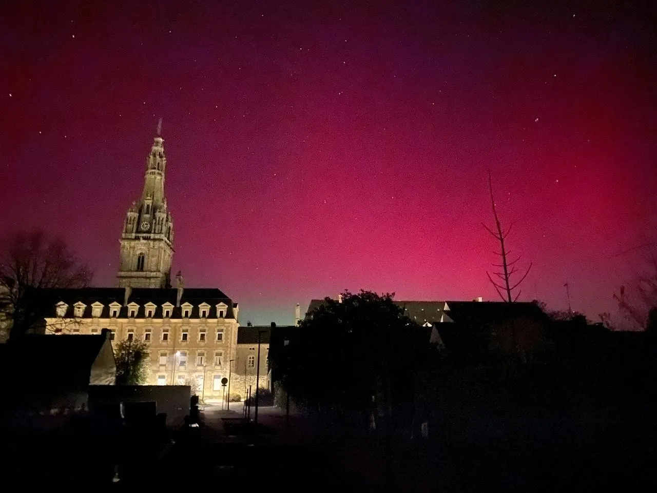 Aurore boréale dans le ciel de Quimper, dans le Finistère. Sophie