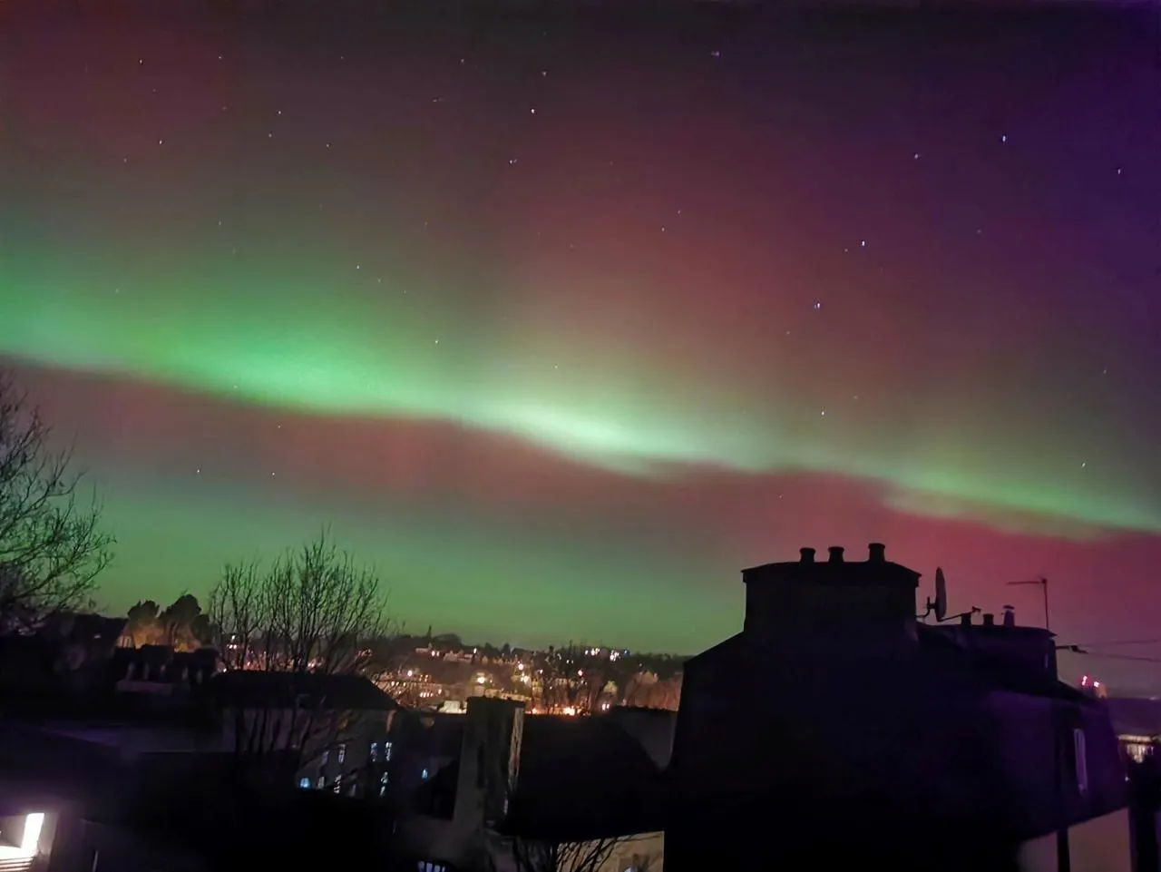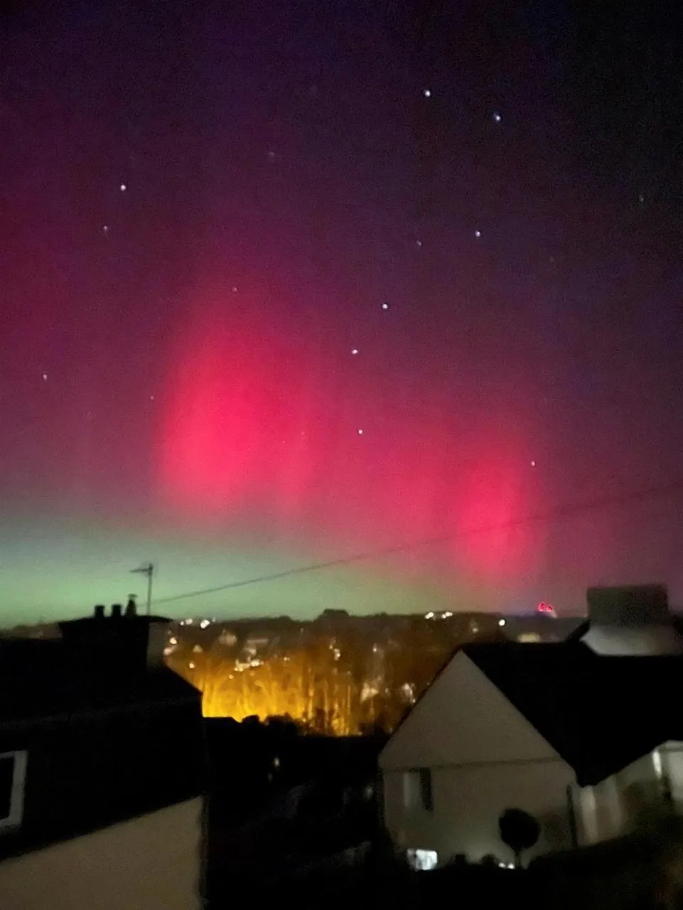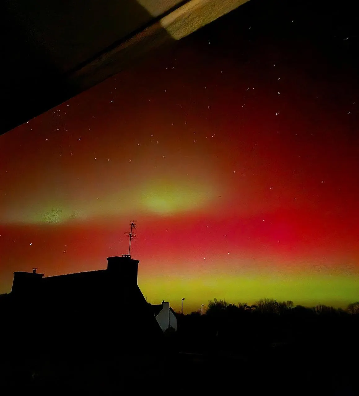 Aurore boréale dans le ciel de Quimper, dans le Finistère. Sophie