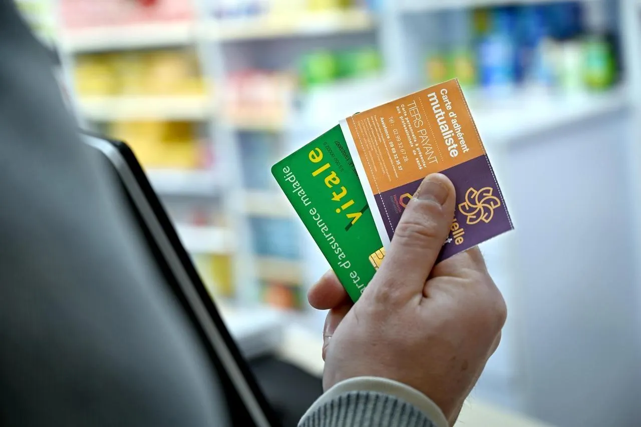 Un client présente sa carte de mutuelle (carte d’adhérent mutualiste) et sa carte Vitale dans une pharmacie Le budget de la Sécurité sociale 2026 prévoit un gel des tarifs des complémentaires santé en 2026. Problème : les assureurs contestent et les appels de mensualités ont déjà été envoyés aux clients. Photo : Marc Ollivier © Marc Ollivier/Ouest-France