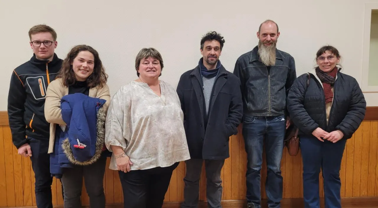 Valérie Texier entourée de Louis Gilquin et Chloé Grellier, Geoffroy Boizon et M. et Mme Guillaume Castin, réparateur électroménager. © CO