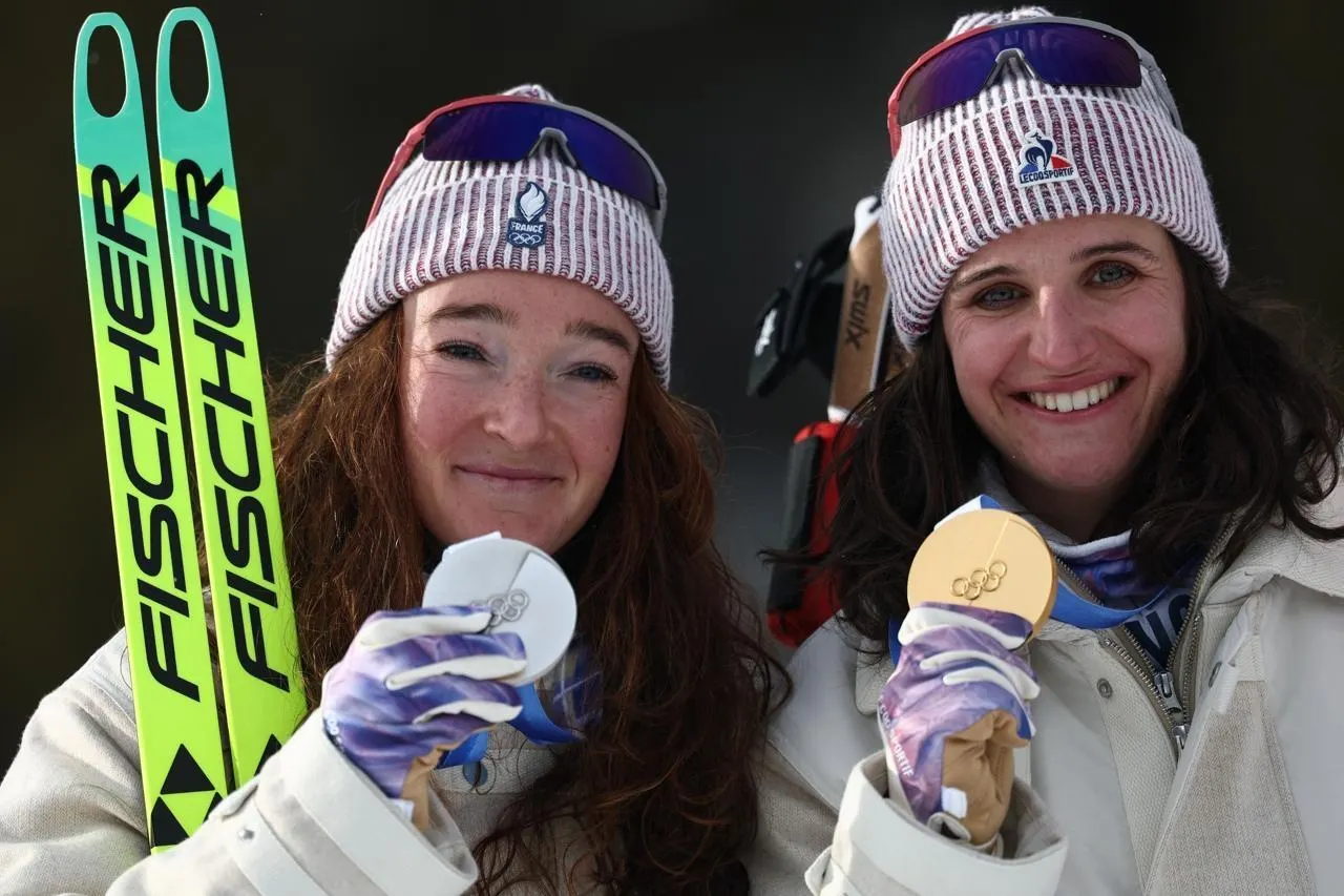 Lou Jeanmonnot (à gauche) et Julia Simon, déjà médaillées sur ces Jeux, espèrent porter la France au sommet ce mercredi 18 février. © Franck Fife / AFP