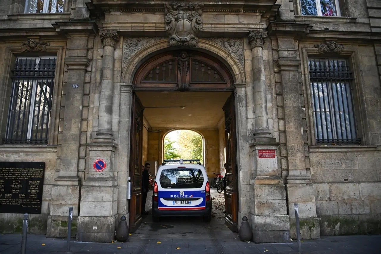 Un véhicule de police entrant dans le lycée Montaigne après la découverte du corps d’un élève de 17 ans dans la cour de l’établissement à Bordeaux (Gironde), le 25 novembre 2025. © CHRISTOPHE ARCHAMBAULT/AFP