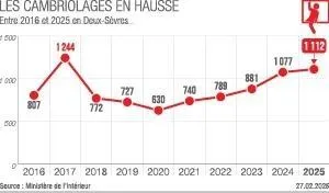 Le nombre de cambriolages a augmenté en Deux-Sèvres entre 2020 et 2025... |