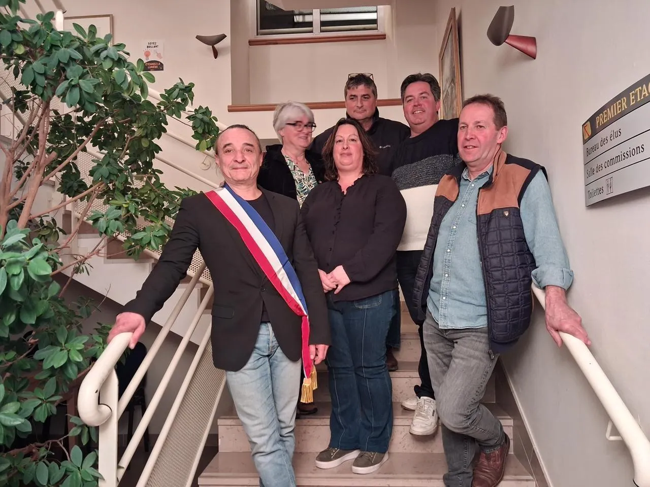 De gauche à droite : Le maire Pierre Rambault, Isabelle Sagot, Régis Billy (au premier rang). Véronique Brit, Patrick Thaudière et David Auber (au second plan). © CO