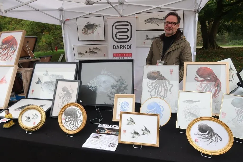 Ses poissons attirent l’œil. Sylvain Garrigues, alias Darkoï, expose pour la première fois ses œuvres au Parc oriental de Maulévrier, dans le cadre du Week-end des arts du Japon, du 9 au 11 novembre.  Ce sont des gyotaku, c’est un art ancestral japonais qui consiste à recueillir l’empreinte d’un ...
