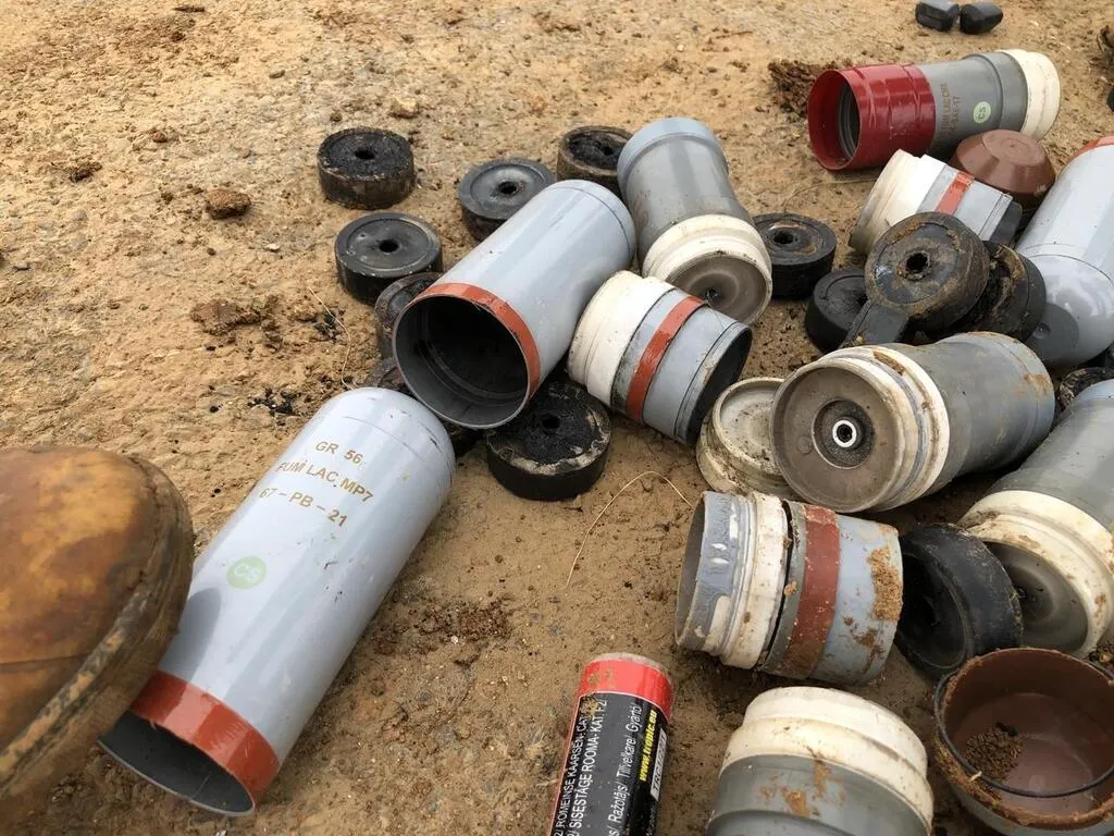 Un petit échantillon des restes de grenades retrouvés sur le sol au moment de « la trêve » des affrontements. CO