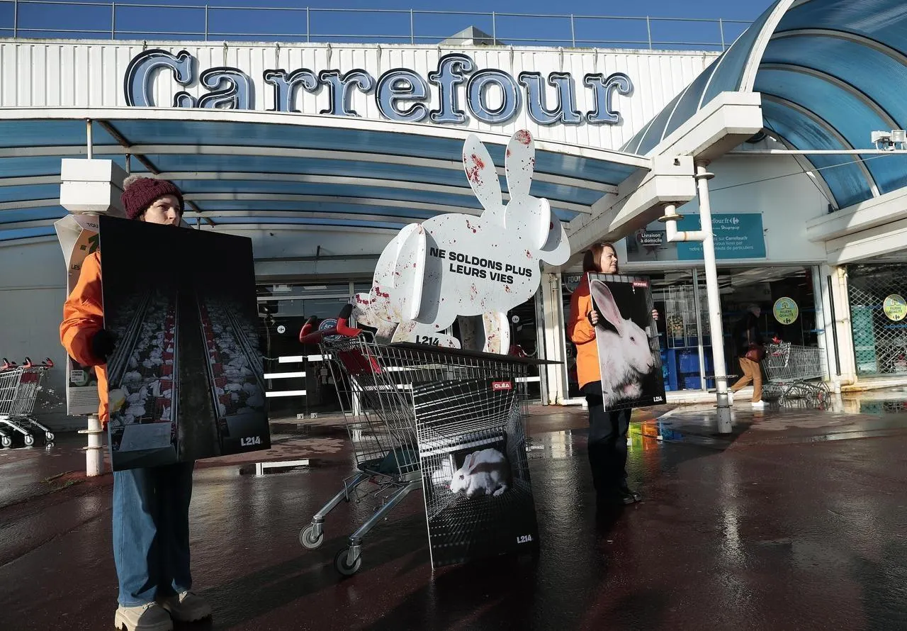 Le 24 janvier 2026, une équipe de l’association de défense des animaux L214 manifestait devant le supermarché Carrefour de Niort, en demandant à l’enseigne de réduire le nombre de produits issus de l’élevage intensif.