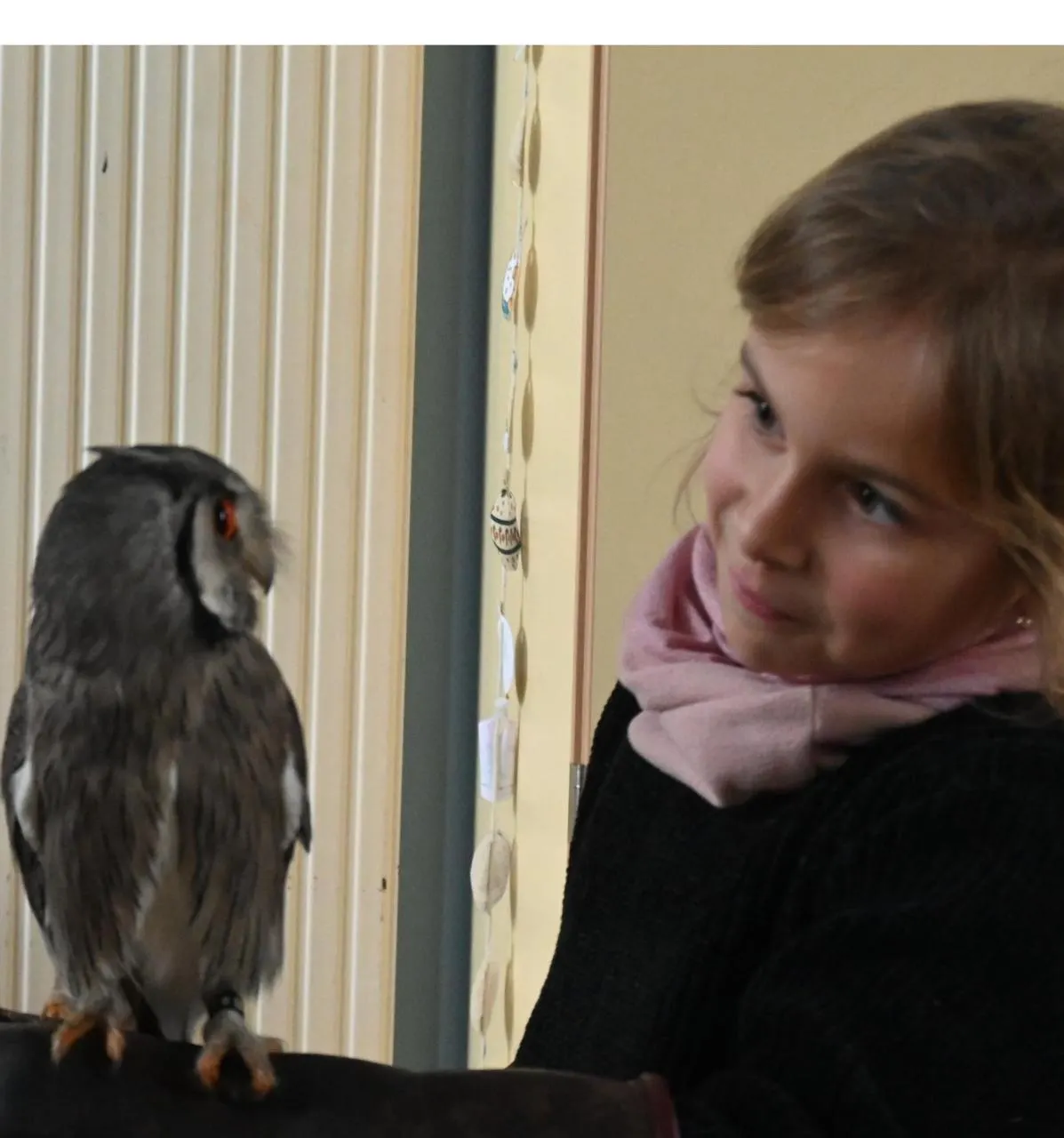 Chaque enfant a eu la possibilité de tenir un hibou sur son bras recouvert d’un gant de cuir. © CO