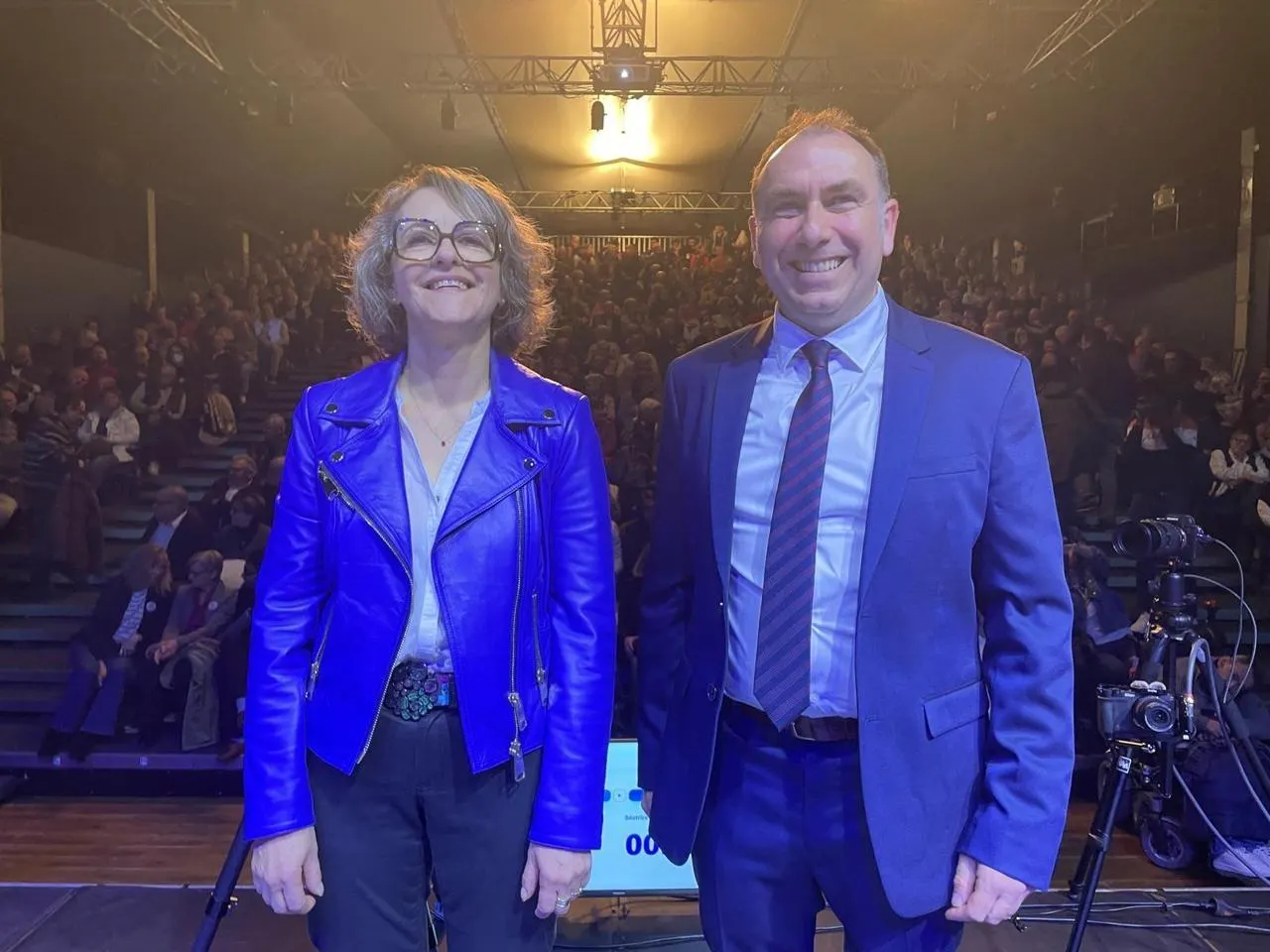 Quelques minutes avant le débat, Béatrice Largeau et Jean-Michel Prieur se sont prêtés au jeu de la photo souvenir. Tout sourire. © CO – Lucas Jariais