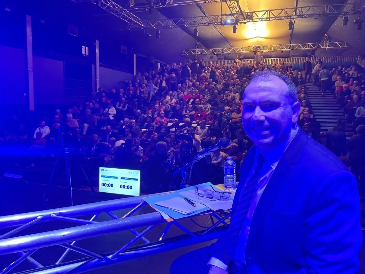 Sur la scène : le maire sortant (sans étiquette), Jean-Michel Prieur. Face à ...