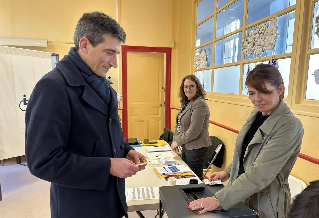 Le maire sortant, Jérôme Baloge, a voté ce dimanche 15 mars 2026 à 9 h 30, dans les murs de l’école Paul-Bert où officiait notamment Christelle Chassagne, son adjointe à la culture. © CO - Olivier CUAU