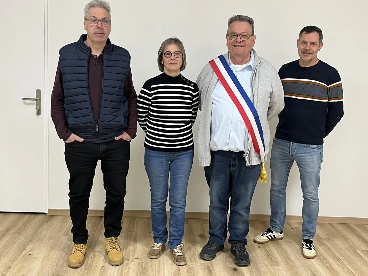 Lors de l’installation du conseil municipal, vendredi 20 mars 2026, Lionel Aigron a été réélu maire de Saint-Généroux (Deux-Sèvres). Il est entouré de trois adjoints.