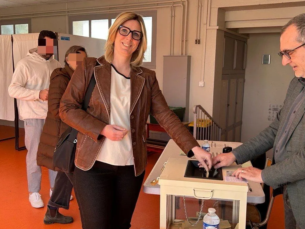 La journée marathon de Céline Bonnet-Derisbourg, la candidate Rassemblement national à Niort a commencé quelques heures avant son passage au bureau de vote de l’école de la Mirandelle où elle a déposé son bulletin dans l’urne.