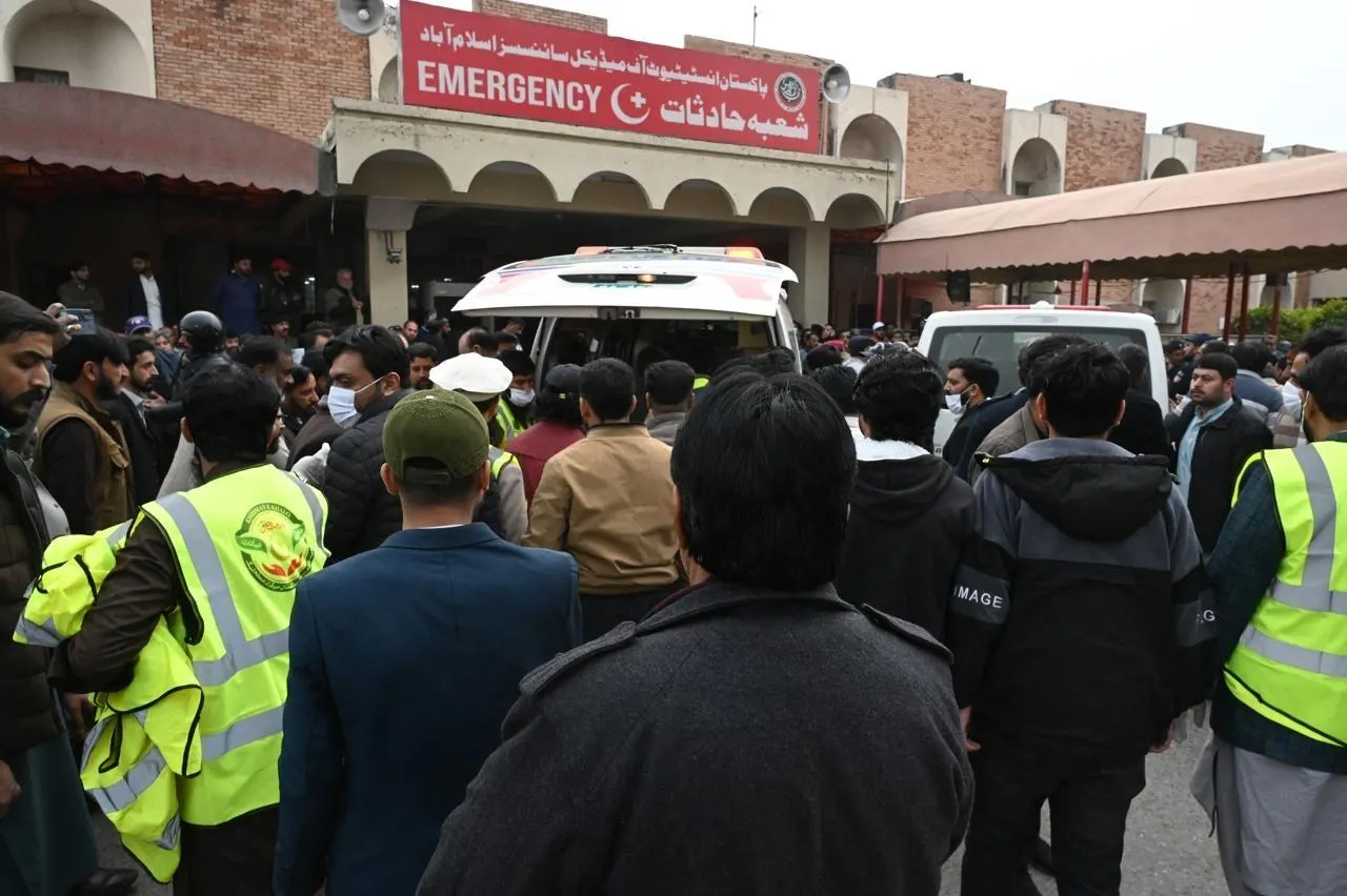 Des victimes blessées lors d’un attentat-suicide perpétré à l’Imam Bargah (mosquée chiite) sont transportées vers un hôpital d’Islamabad, au Pakistan, le 6 février 2026. © MUHAMMAD REZA/Anadolu via AFP