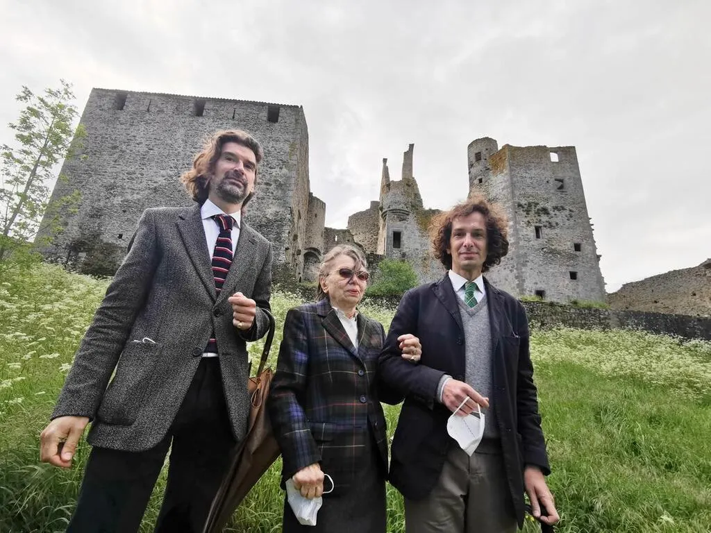Glénay, lundi 17 mai 2021. Les frères Philippe et Michel Durand et leurs parents (ici leur mère Nicole) ont racheté le château en 2012. Dix ans après, il va retrouver son toit à l’identique. © CO – Carl GUILLET