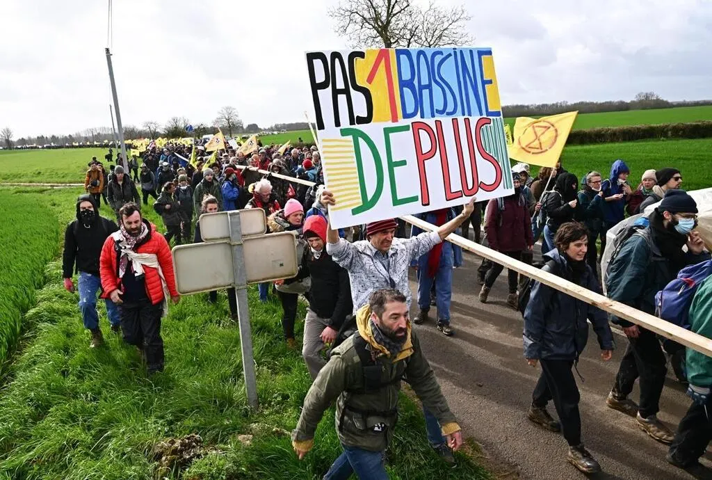 Ce samedi 25 mars 2023, Hier, plusieurs milliers de personnes, 30 000 selon les organisateurs, 6 000 à la mi-journée selon la préfecture, ont participé, dans les Deux-Sèvres, à la manifestation contre les bassines – ces gigantesques retenues d’eau destinées à l’irrigation agricole – à l’appel du collectif « Bassines non merci ! », le mouvement des Soulèvements de la Terre et la Confédération paysanne.