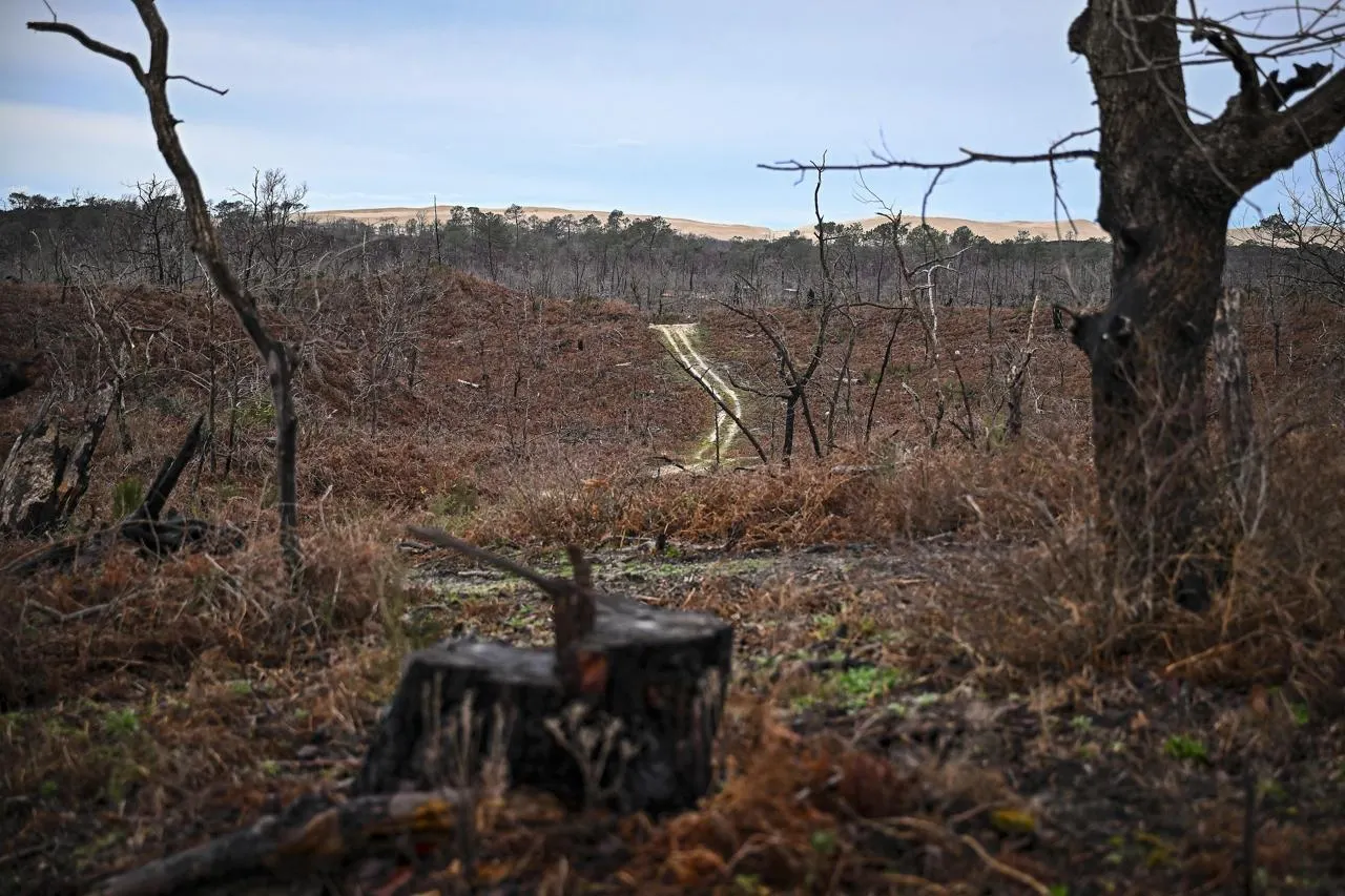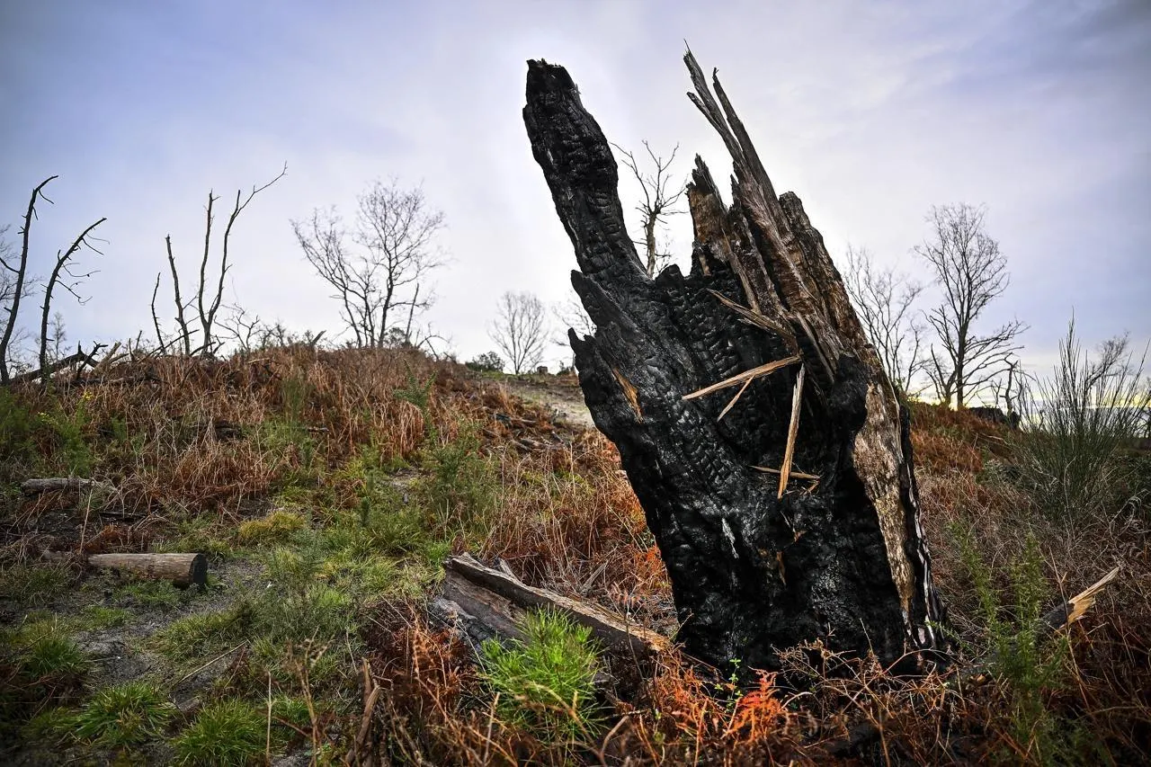 Près de 30 000 hectares ont brulé en Gironde cette année, constituant le pire incendie jamais connu dans la région. La forêt usagère le 2 Février 2026. © Vincent Michel / Ouest-France
