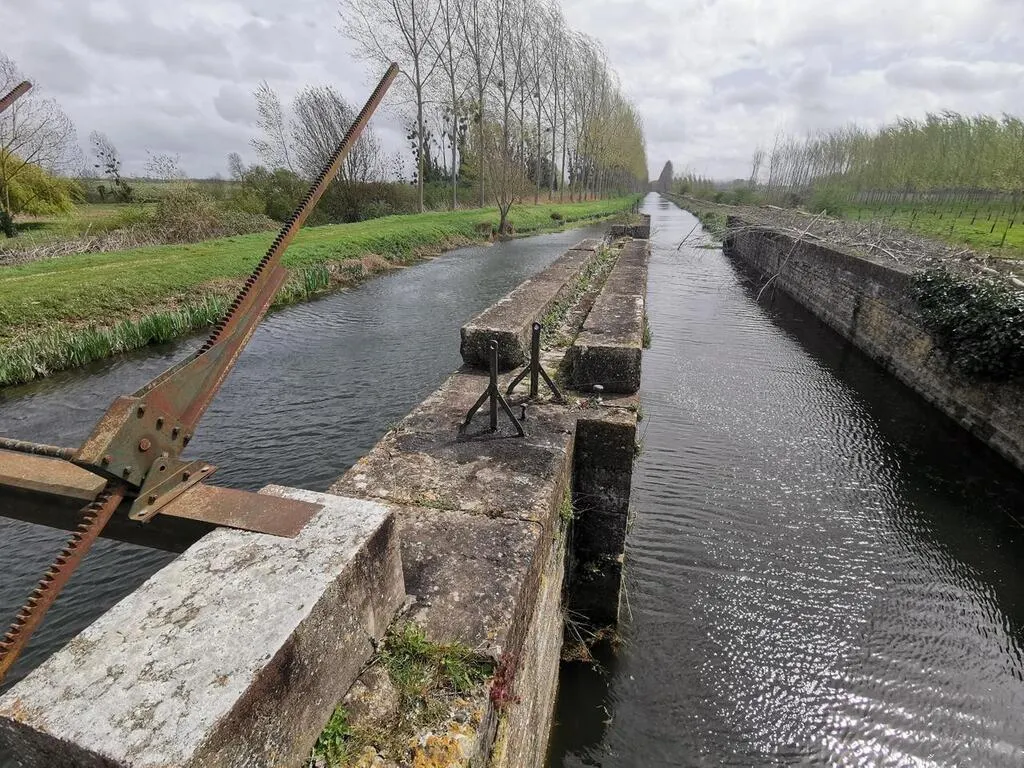 Curçay-sur-Dive, vendredi 8 avril. À la frontière de Saint-Martin-de-Mâcon et de Vrères, cette écluse sur le canal de la Dive servait autrefois à la navigation de péniches. © CO - Carl GUILLET