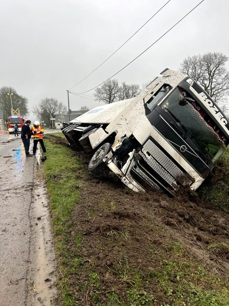 Un poids lourd transportant des légumes et une voiture sont entrés en collision, lundi 9 février 2026, sur la D18, à hauteur de Séglien (Morbihan). Au volant de la voiture se trouvait une femme de 25 ans, qui a été éjectée de son véhicule lors de l’impact. Blessée, elle a été transportée au centre hospitalier de Noyal-Pontivy (Morbihan).