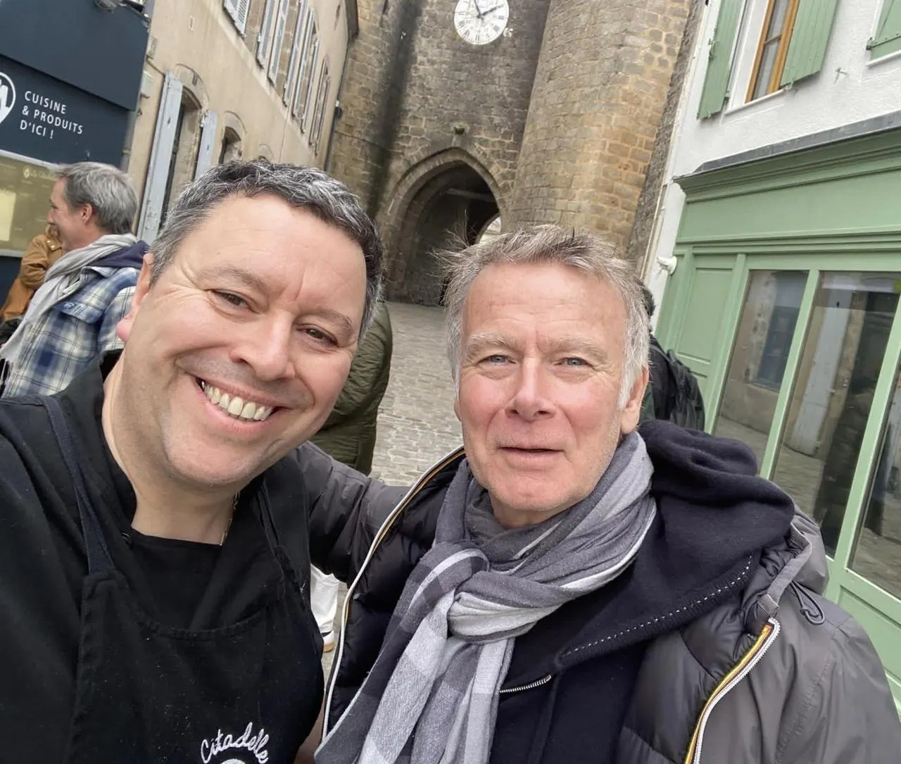 Samuel Pacault, ancien journaliste à Parthenay, et Franck Dubosc. Un selfie souvenir immortalisé en début d’année lors d’une visite de l’acteur à la Citadelle. © Samuel Pacault