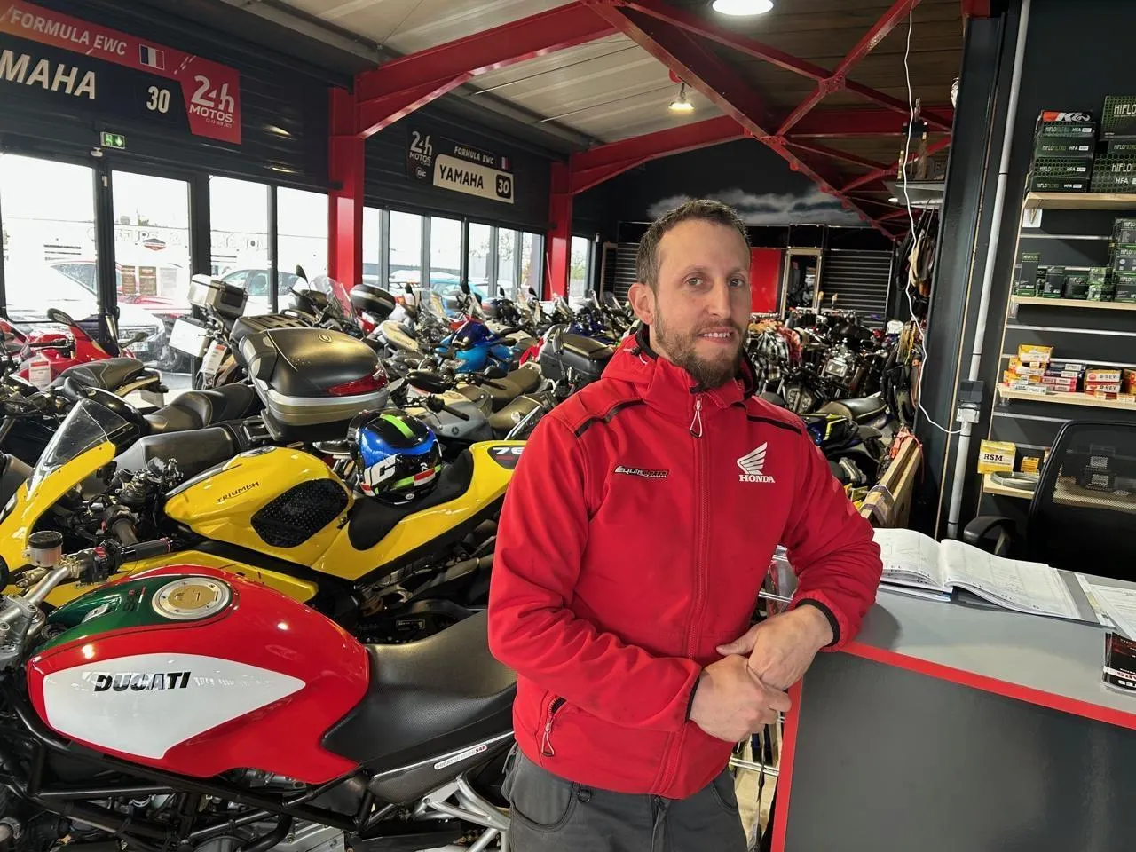 Dans le milieu des motards à Parthenay, Thomas Guilbot est une référence. Après avoir dirigé des années un garage plutôt modeste, il a décidé de s’agrandir dans la zone de La Bressandière, à la sortie de la ville, en direction de Bressuire. Un pari commercial pour cet ancien vainqueur des 24 Heures du Mans moto.