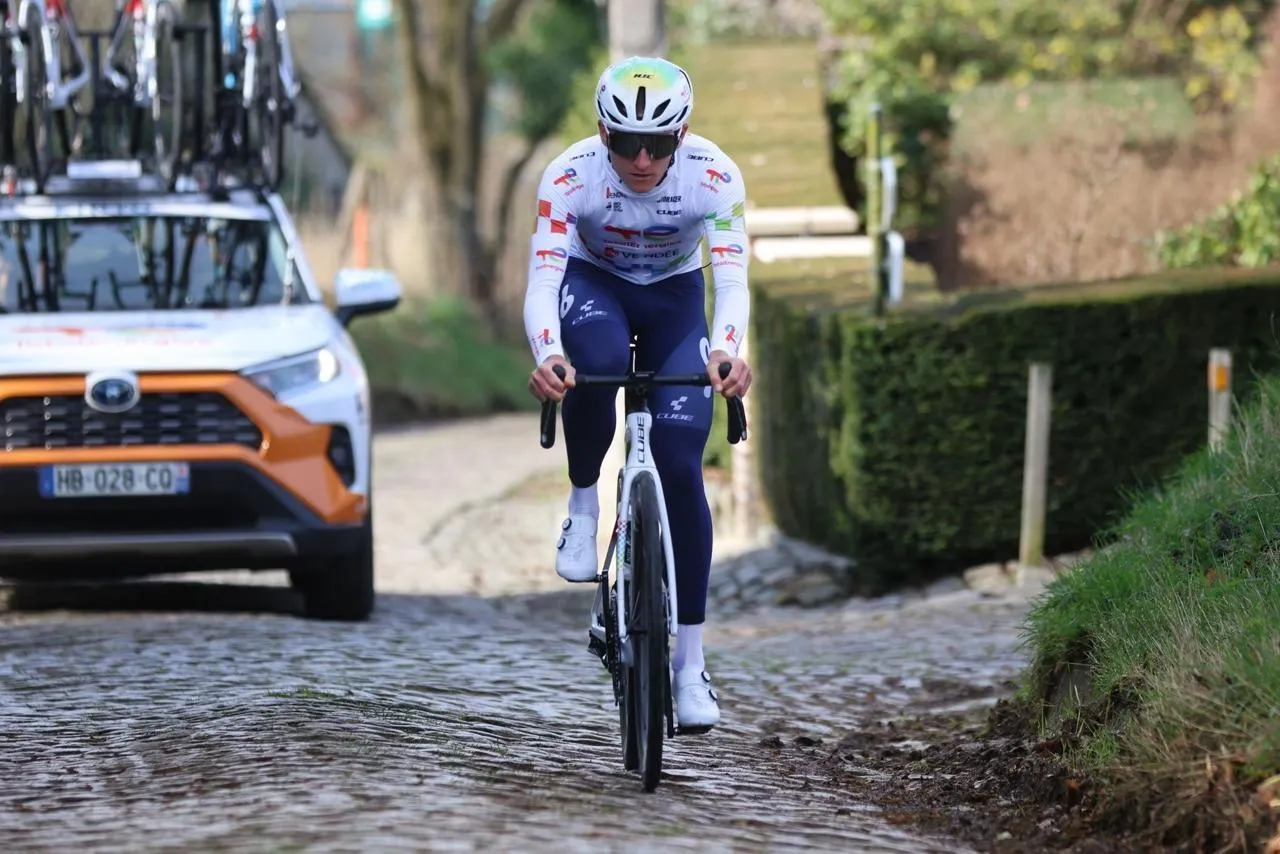 Ici sur la reconnaissance du Het Nieuwsblad, Thomas Gachignard apprécie les pavés. © Team TotalÉnergies