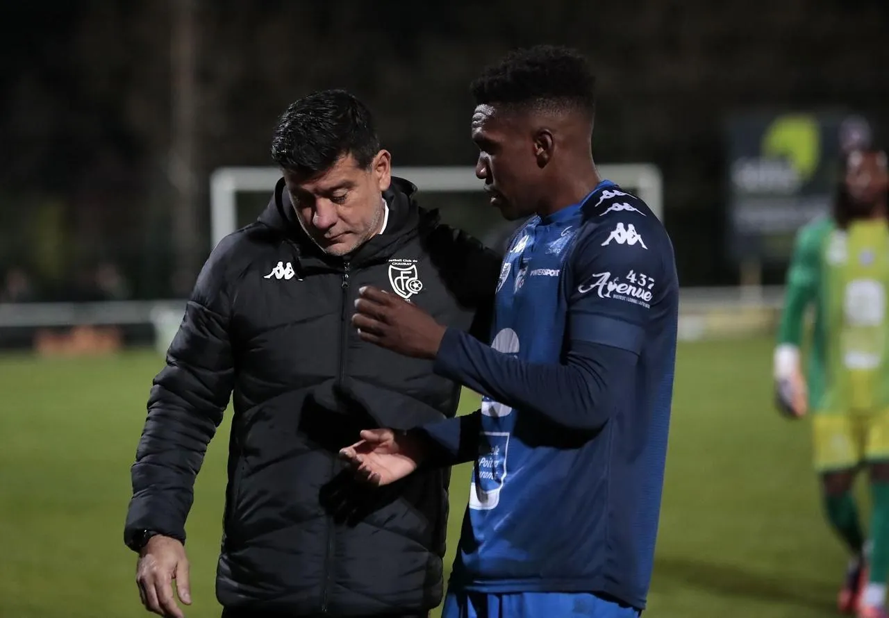 Après avoir bouclé la première partie de saison par un nul contre Angoulême (0-0), les joueurs de Fabrice Fontaine (ici avec Tieri Godame) ont repris l’entraînement ce lundi 29 décembre. © CO - Benoit FELACE