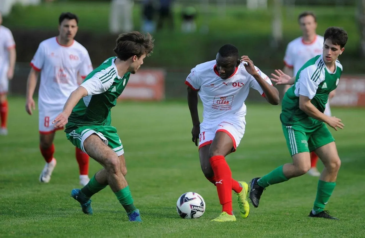 Niort, stade de Saint-Liguaire, hier après-midi. Thierno Baldé et les Léodgariens ont été pris dans l’étau du FCE Mérignac Arlac. © CO – Christophe Bernard