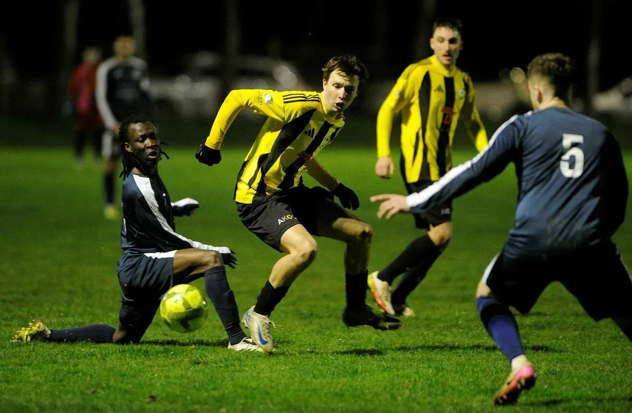 Melle, stade du Pinier, samedi soir. La lutte a été âpre, mais les Jaune et Noir de l’ES Celles-Verrines ont dominé leurs voisins de l’AS Pays mellois. © CO – Christophe Bernard