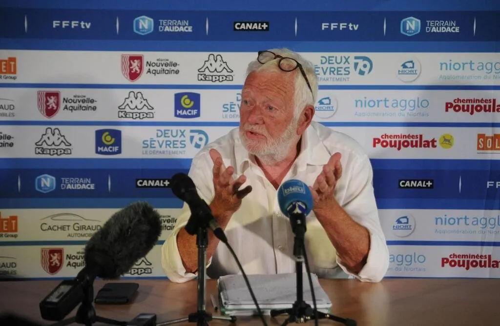 Mercredi 14 août 2024, en présence d’une partie du bureau de l’Association Chamois niortais, le président Guy Fleurquin a présenté l’état actuel compliqué du club. © CO - Christophe BERNARD
