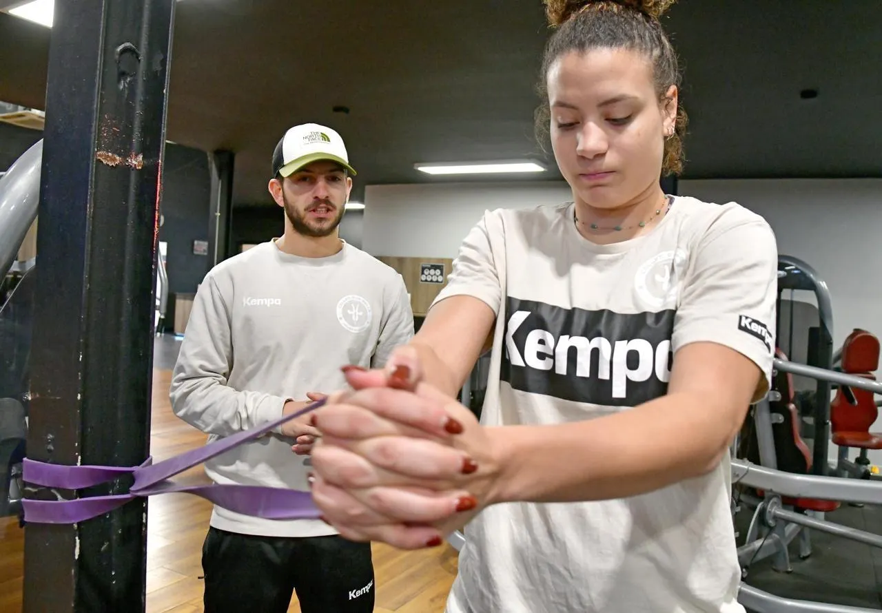 Sous l’œil du préparateur physique Tom Almazan, Lorine Perrot et les handballeuses du HBC Celles ont repris l’entraînement ce jeudi 4 décembre 2025. © CO - Marie DELAGE