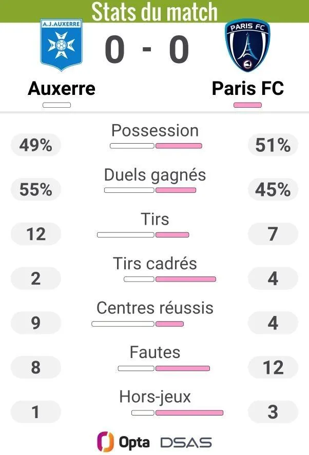 Les statistiques du match Auxerre - Paris FC. DSAS