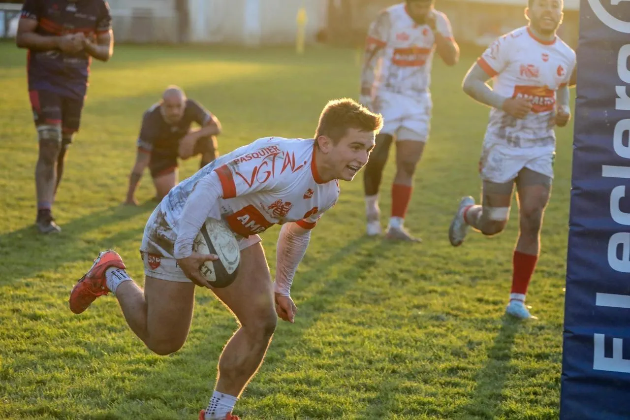 Il n’y a pas eu de temps mort ce dimanche 30 novembre 2025 au stade Brisset dans une rencontre complètement débridée entre Parthenay et Saintes, avec treize essais, et cent points marqués au cours des 80 minutes.